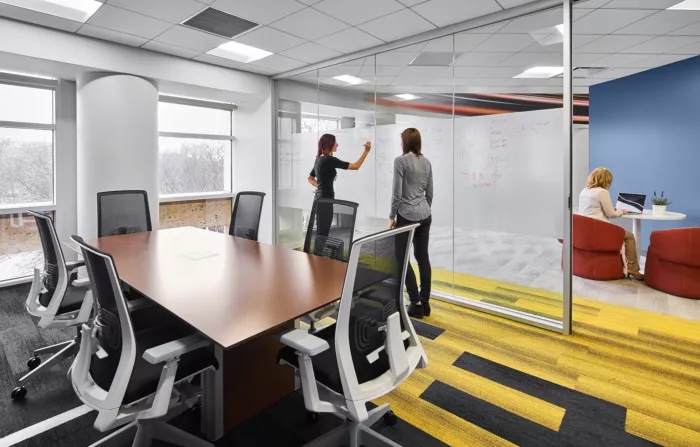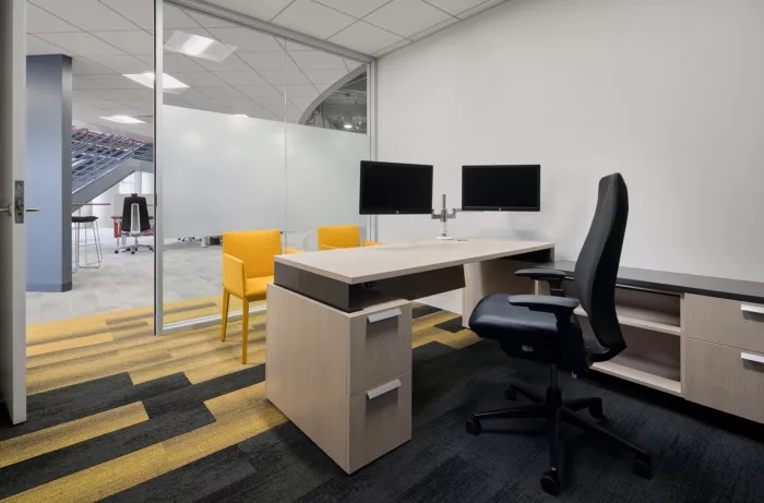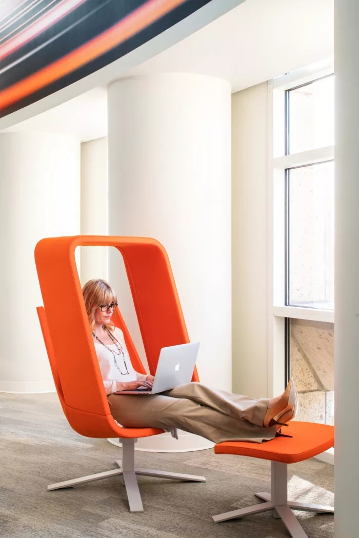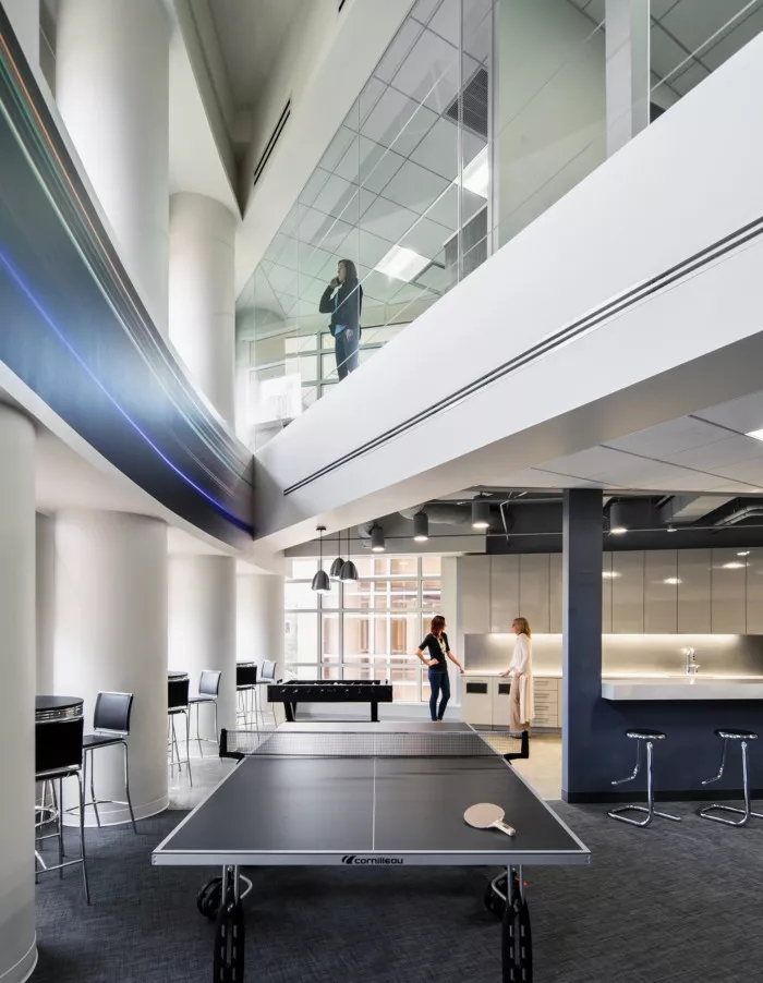 這里每一寸都為員工提供了一個支持他們成功的環(huán)境,依靠技術(shù)手段,打造鼓勵員工連接和溝通的氛圍。墻面白板、視頻會議室、各種空間和家具允許個人和團隊在辦公室內(nèi)的完美位置進行協(xié)作,當然,如果想來一場即興的乒乓球比賽也未嘗不可。