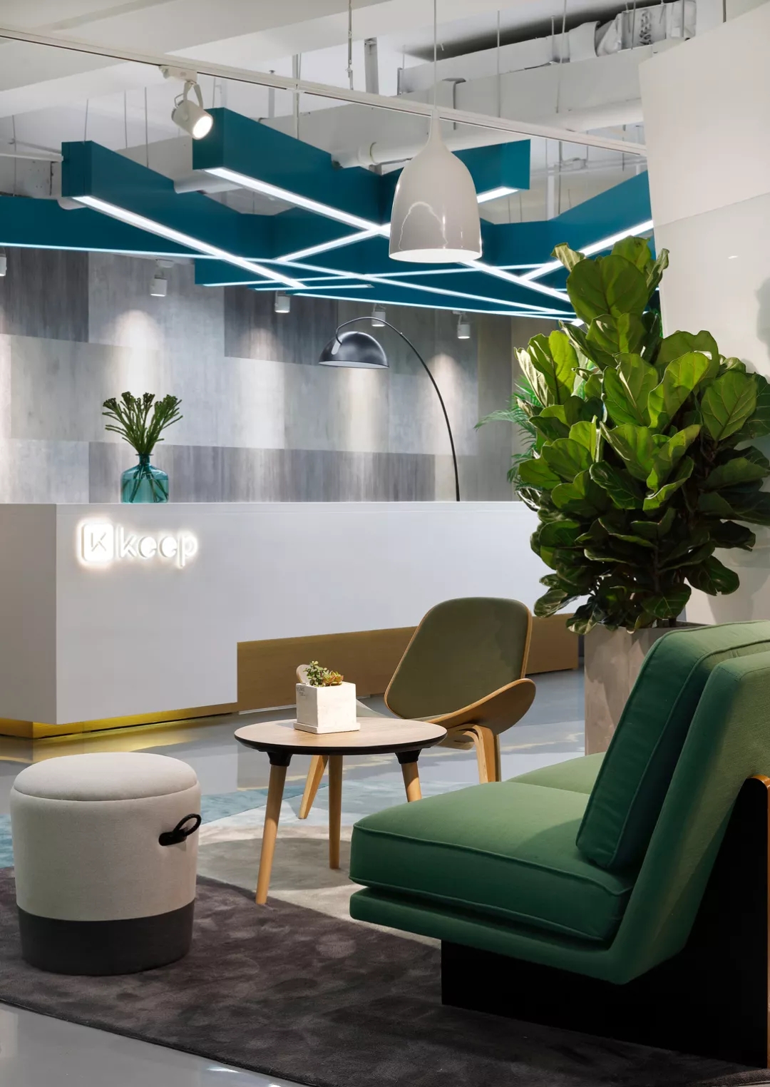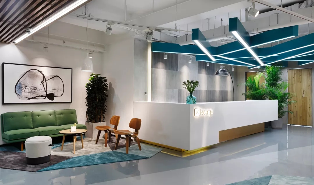 靠近電梯入口的前臺(tái)通過(guò)頂部的放射狀線條設(shè)計(jì)產(chǎn)生視覺(jué)延伸感,兩側(cè)區(qū)域通過(guò)軟裝陳設(shè)實(shí)現(xiàn)多層次的空間,靈活滿足接待、等候、會(huì)議及咖啡茶點(diǎn)的各種需求,員工和來(lái)訪人員各取所需互不干擾。