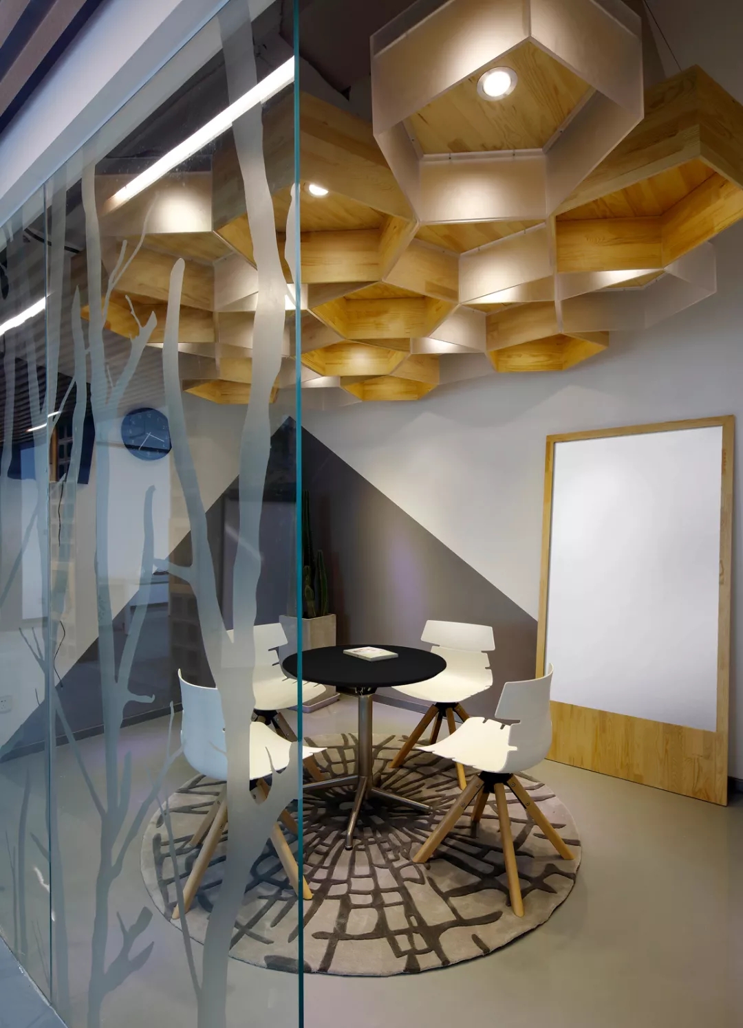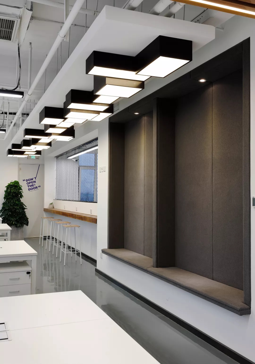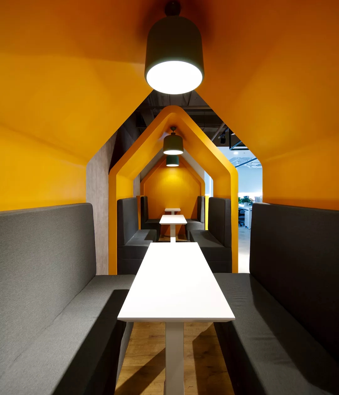 最新完成的整層辦公區(qū)延續(xù)了主體風(fēng)格,少了花俏的點(diǎn)綴,更多地使用色彩碰撞來(lái)提振精神,比如亮橙色開放會(huì)議間與品牌VI的臟灰色搭配。也首次嘗試了全白色調(diào)的通透會(huì)議室,算是對(duì)極致風(fēng)格的小探索。