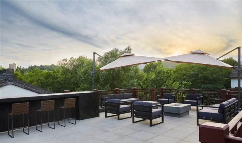 露臺(tái)是包廂功能場景向室外的延伸,為賓客提供了聚會(huì)絕佳場所。聽風(fēng)望水、閑看流云,讓人悠然自在,回歸詩意心境。