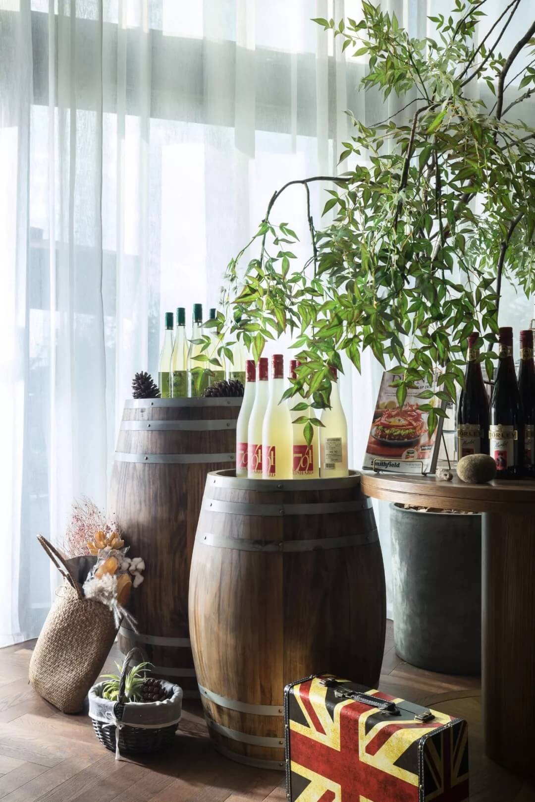 自然的青翠綠意與質(zhì)樸的啤酒桶木藝氣質(zhì)互融,靈韻交加,酒香沁人,不加過多修飾地圍合出一隅相對(duì)靜謐的臨窗休閑區(qū)。在這里,設(shè)計(jì)透過落地玻璃窗的相隔將內(nèi)外視域完全打開,陽光傾灑進(jìn)來,引入截然不同的清新與濃密的自然舒適度,外在景觀與內(nèi)在布設(shè)氣質(zhì)相合。
