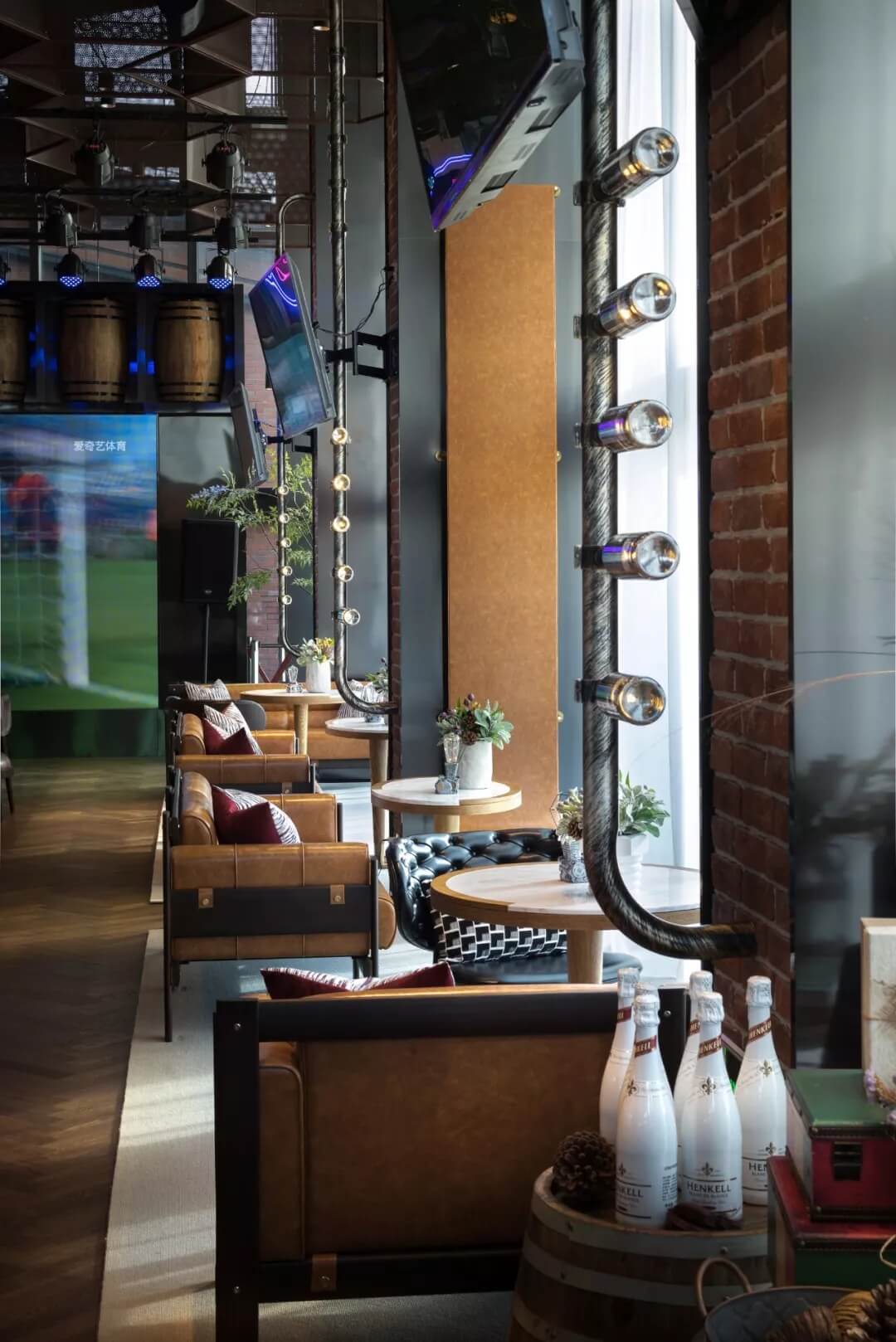 樂尚設(shè)計(jì)擔(dān)綱本案室內(nèi)及軟裝設(shè)計(jì),以國際化、多元化的設(shè)計(jì)詮釋風(fēng)格定位,在手法上提煉工業(yè)風(fēng)的構(gòu)件元素,“工業(yè)風(fēng)的形式與氣質(zhì)融注其中,自然的生態(tài)美亦盡數(shù)納入,粗獷與細(xì)膩在映襯中的美學(xué)意義更臻完滿,設(shè)計(jì)的意旨得以實(shí)現(xiàn),營造出俱樂部看球賽現(xiàn)場(chǎng)的濃郁氛圍感。”
