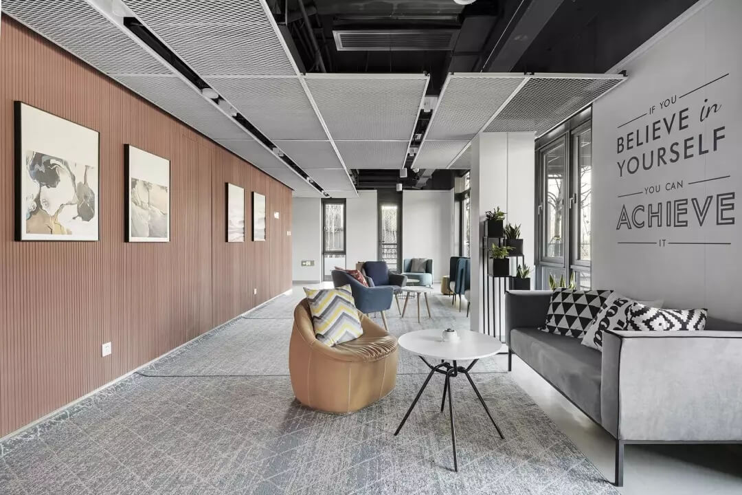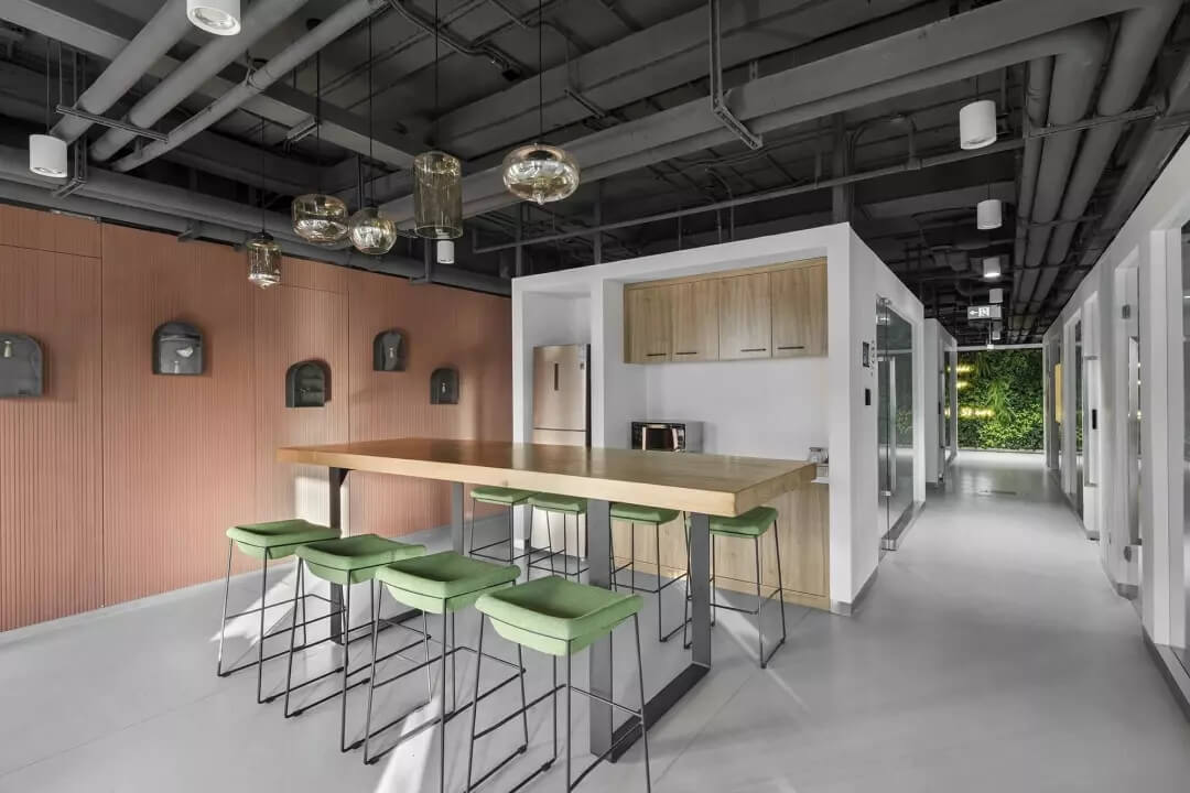 在空間劃分上,我們遵循城市綠色生態(tài)美學,充分利用創(chuàng)新技術進行模塊化設計,將裝配式建造、節(jié)能低碳等許多新理念應用到整個空間中去,將整體空間劃分成商務區(qū)、辦公區(qū)和休閑區(qū),具體到擁有獨立辦公室65個,辦公工位464個,會議室5個,以及水吧、咖啡廳、休息艙、茶室、電話亭等共享區(qū),我們想要脫離傳統(tǒng)辦公空間的單調枯燥,讓一站式的休閑服務和辦公完美結合,觸達現代人內心的深層需求,從而使整體設計方案在保持高品質的同時做到高效、低成本。