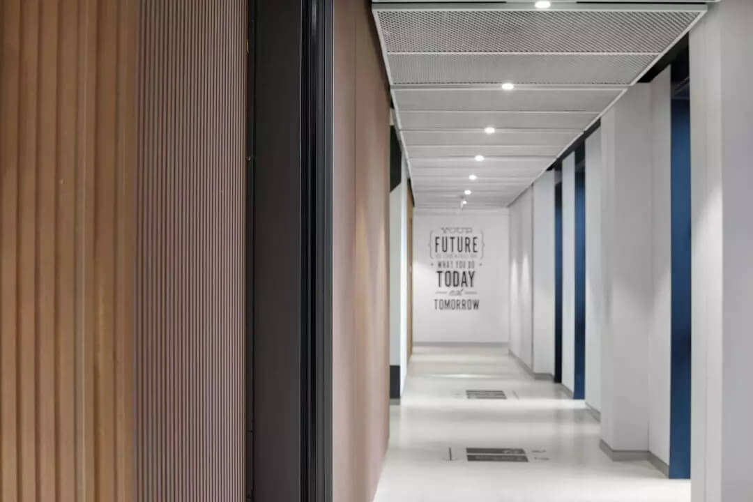 在呈現綠色生態(tài)之外,我們想要現代科技隨處可感觸可體驗,所以在整個辦公區(qū)域內,融入了人臉通行、數字化管理、辦公會議共享預定以及會議無線投屏等功能,再加上手機搖一搖的開門技術,讓人和空間時刻都能進行智能互動。