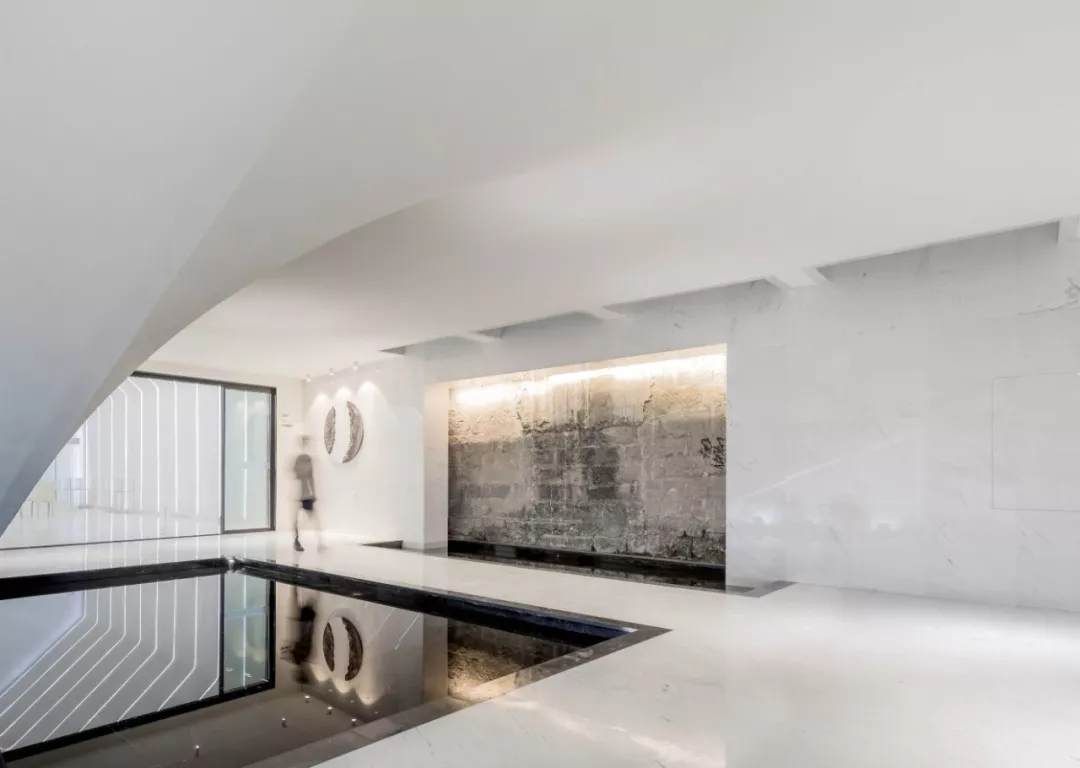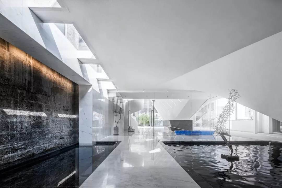 “光”,我們視為一種不可或缺的設(shè)計素材,自然的亦或是人工的,恰到好處的設(shè)計能讓光影不止于功能,更能創(chuàng)造精神意境里的愉悅。例如中庭水院的采光天井和禮堂的屋頂天窗不僅補充了照明,細(xì)長而有序的幾何形態(tài)還勾勒出抽象的光影矩陣,引領(lǐng)心靈通往星辰。