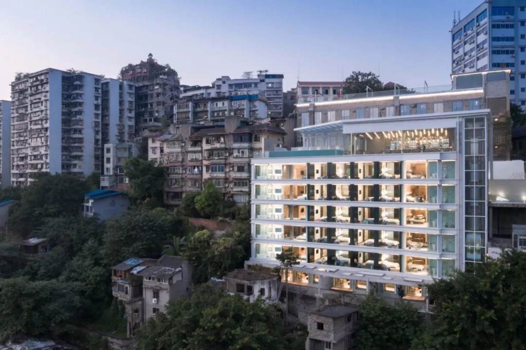 落成后的山鬼酒店由老廠房蛻變而來,融合了老廠房的故事與山城的景致,是對度假酒店別樣體驗的勇敢創(chuàng)新,也希望這個改造項目能為當(dāng)下的都市更新和舊房改造帶來一些參考意義。