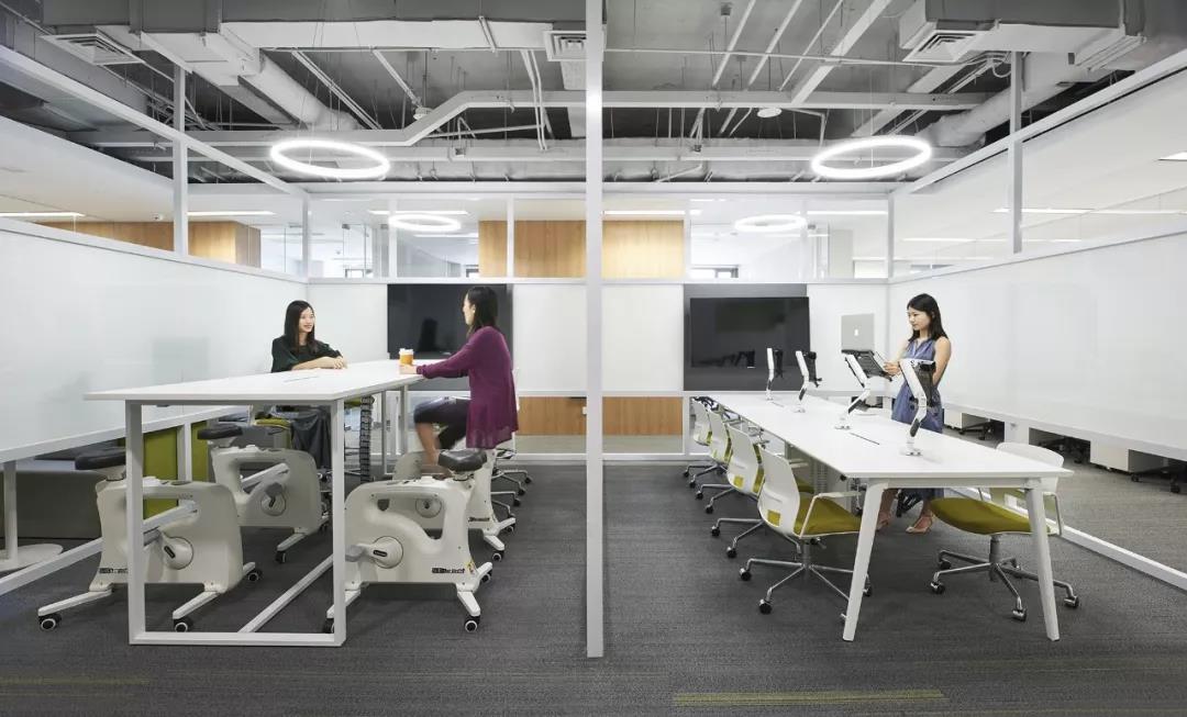 龍湖集團辦公空間在設(shè)計初始就提出了針對員工使用健康的功能化家具體系建立,并在功能平面中單獨劃分出了功能空間,配置有站立式辦公家具及騎行式辦公家具,將鍛煉與工作相結(jié)合,增加了辦公的趣味性,也借以提醒員工培養(yǎng)良好的健康理念。