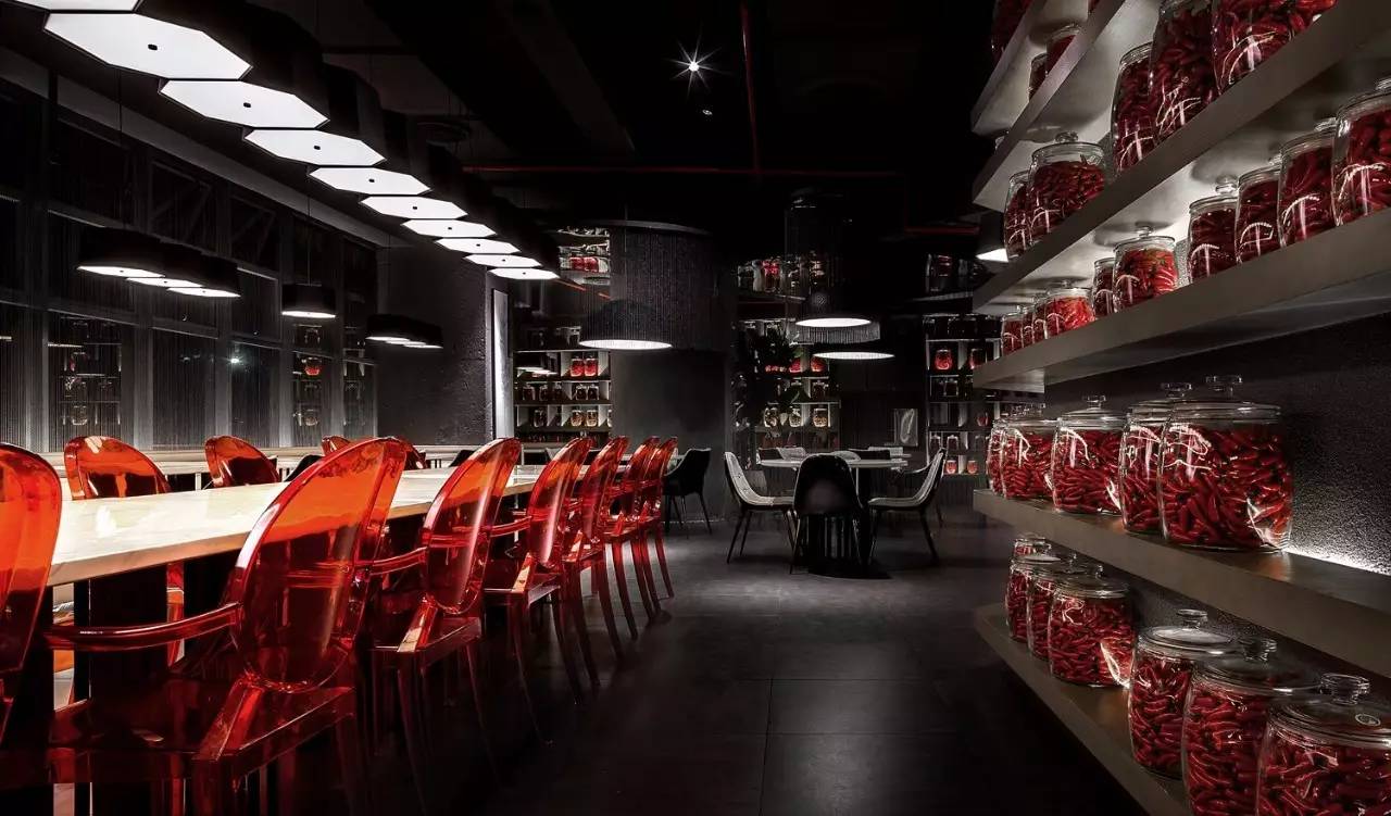 小辣椒湘菜餐廳空間,是以空間的多樣性為主軸。餐廳創(chuàng)始人提出以辣椒裝飾空間,設(shè)計師通過對“小辣椒”這個設(shè)計字符的不斷重復(fù),給空間增加藝術(shù)畫及創(chuàng)意燈飾,成為空間裝飾的細(xì)節(jié)。整個空間的體量不算特別大,但有下沉式空間設(shè)計。用于分割空間的雨滴式珠簾,似動而靜的雨滴隔斷簾營造親密又放松的用餐空間。