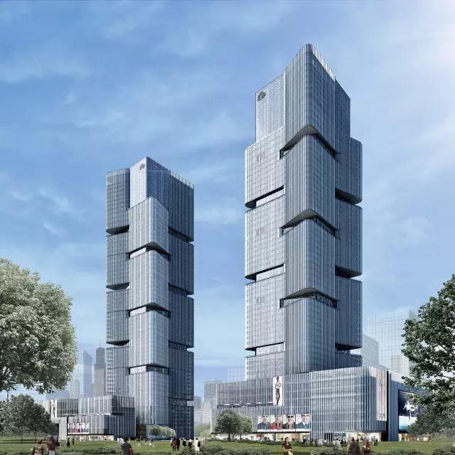 兩棟超高層大廈樓體采用交錯(cuò)參差的結(jié)構(gòu),輕巧精致而又動(dòng)感十足,柔和的圓弧風(fēng)車狀外形與層疊的建筑元素使整個(gè)建筑外觀高貴優(yōu)雅、輕靈通透,具有強(qiáng)烈的視覺沖擊力,成為一道令人驚嘆的城市天際線。