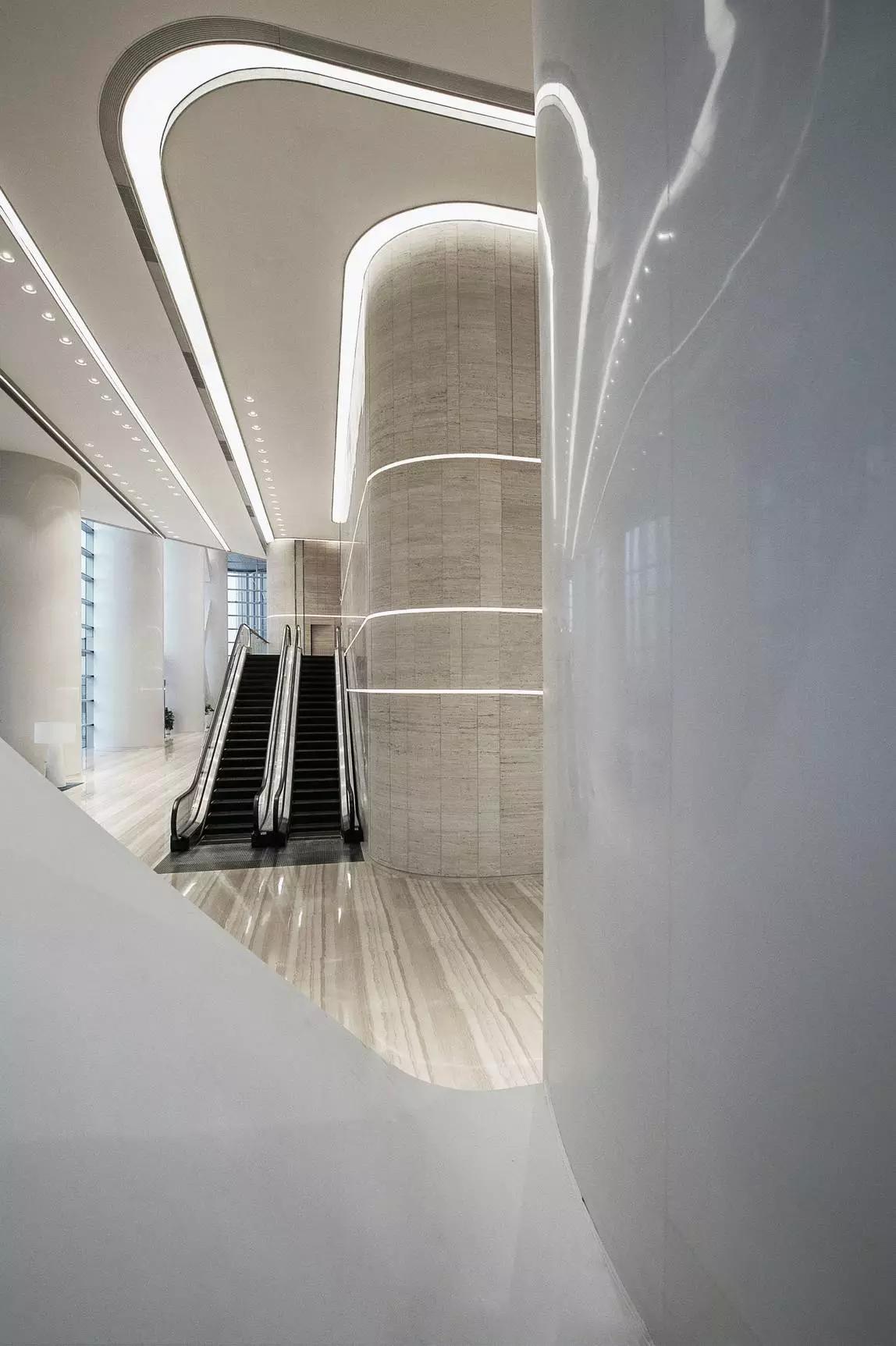 作為中原第一高樓,在追求更為國(guó)際化的,突顯空間的塑造與氣質(zhì)呈現(xiàn)的同時(shí),旨在整體而多層次的展現(xiàn)“地標(biāo)”這一屬性。位于新絲路-核心樞紐的鄭州在延續(xù)了建筑黃河之水奔騰回轉(zhuǎn)立意之外,設(shè)計(jì)師以前瞻視野,結(jié)合城市規(guī)劃發(fā)展的更高格局,兼顧科技創(chuàng)新概念的融入,將水之形立體化與科技化的表達(dá),以一種獨(dú)特精神呈現(xiàn)空間之美。