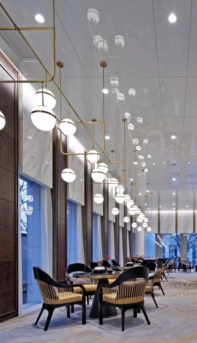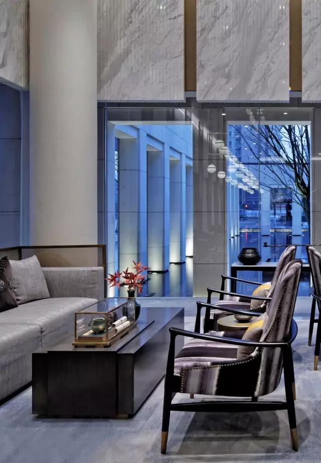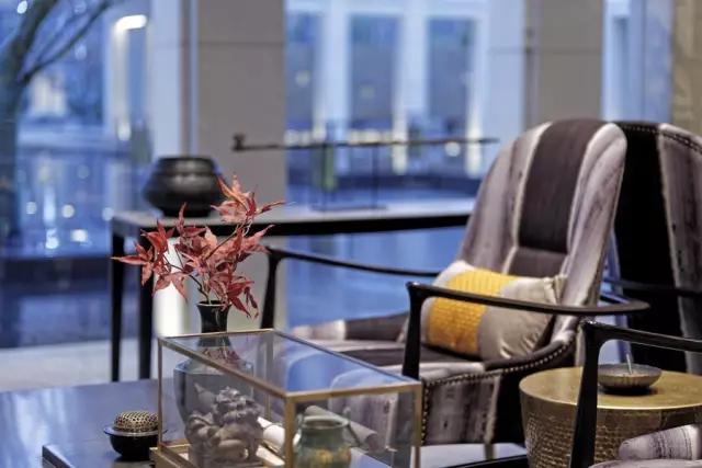 少幾分濃墨重彩,多幾分雅致清寧,灰色系恰好這樣不偏不倚,中正古典,為空間的雅致奠定了基礎。時不時的再加點黃色的點綴,大氣沉穩(wěn)不失生機活力。寫實的拱宸橋畔風景圖和柔軟似水波紋的大面積地毯剛?cè)岵搶崒Ρ龋忈屩臻g內(nèi)成竹在胸的東方意境。