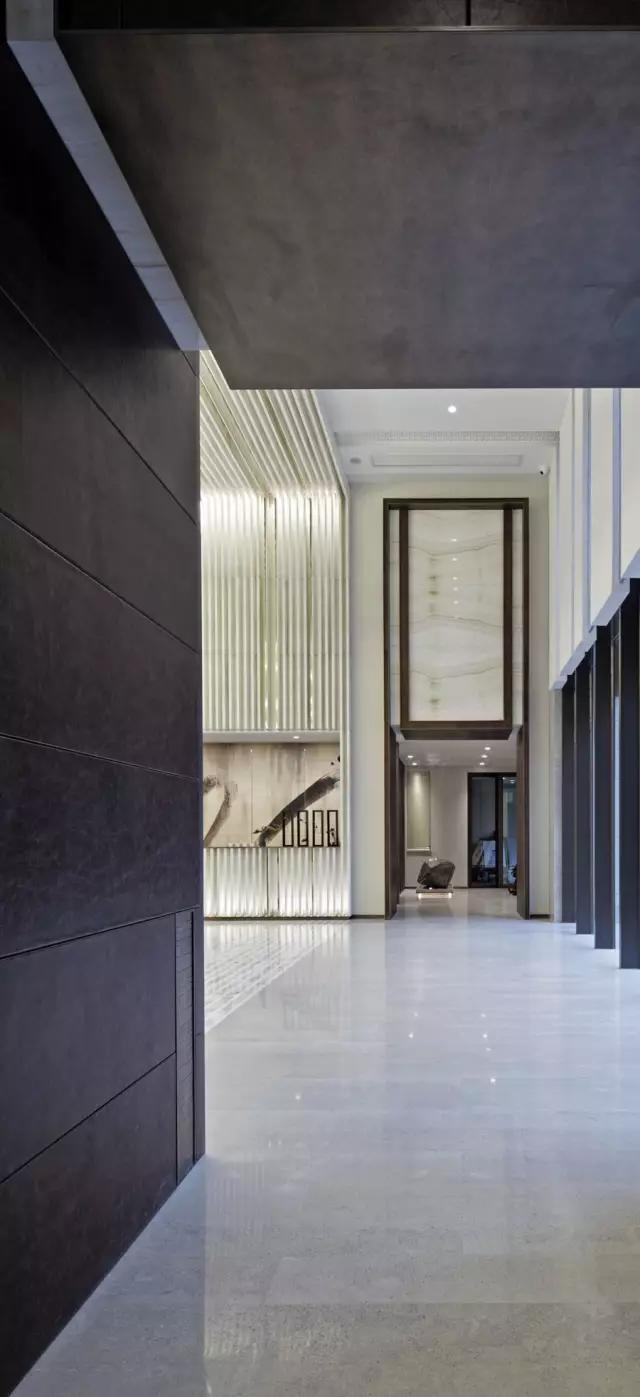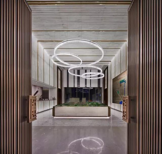 穿過充滿東方韻味的水中步道,在移步易景的氛圍里,不自覺地調(diào)慢身心節(jié)奏,悠然步入接待中心。設計師不拘泥于傳統(tǒng)石材的形體結(jié)構(gòu)和飾面方式,大膽創(chuàng)新地更改重構(gòu)。